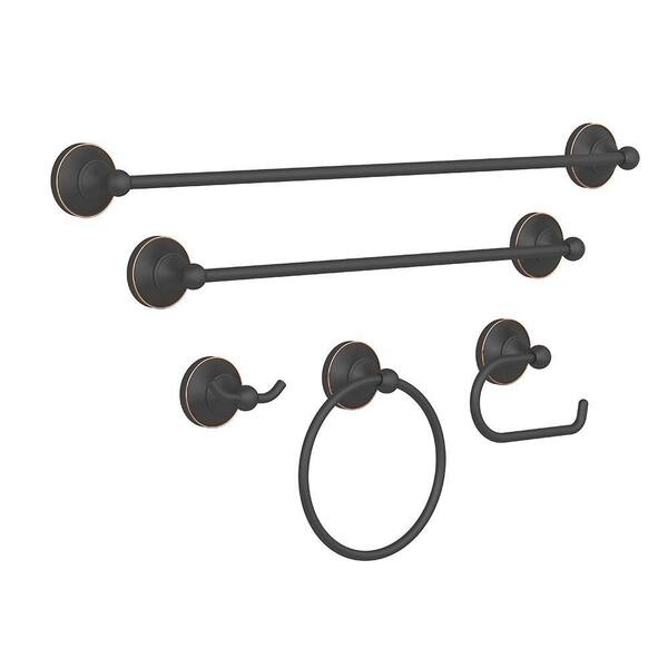 5-Piece Wall Mount Bath Hardware Set in Oil Rubber Bronze