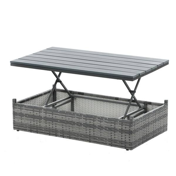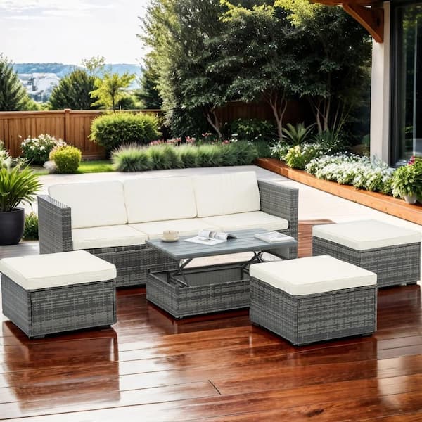 5-Piece Wicker Outdoor Conversation Sofa Set with Lift Top Coffee Table and Beige Cushion