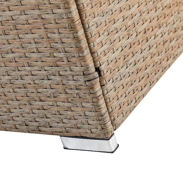 5-Piece Wicker Outdoor Sectional Set with Grey Cushion and Coffee Table Seating Group