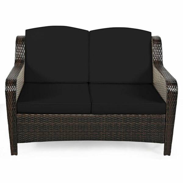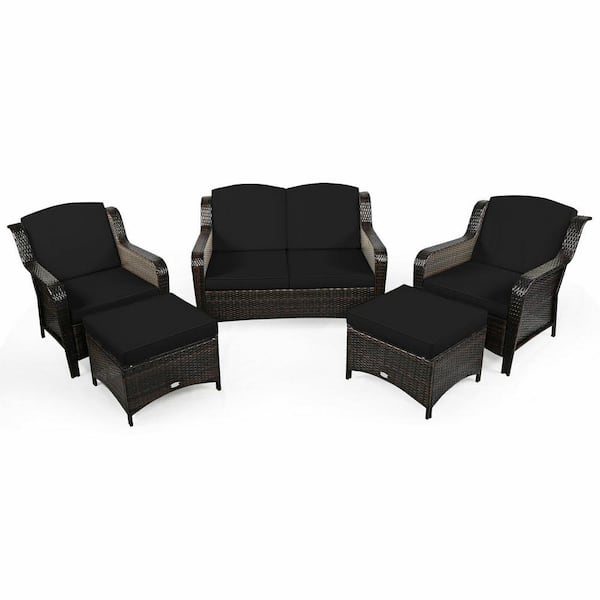 5-Piece Wicker Patio Conversation Set with Black Cushion and Ottoman