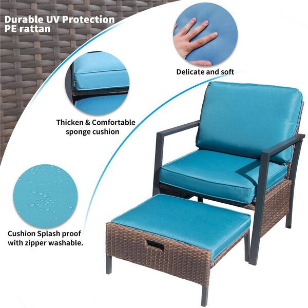 5-Piece Wicker Patio Conversation Set with Blue Cushions