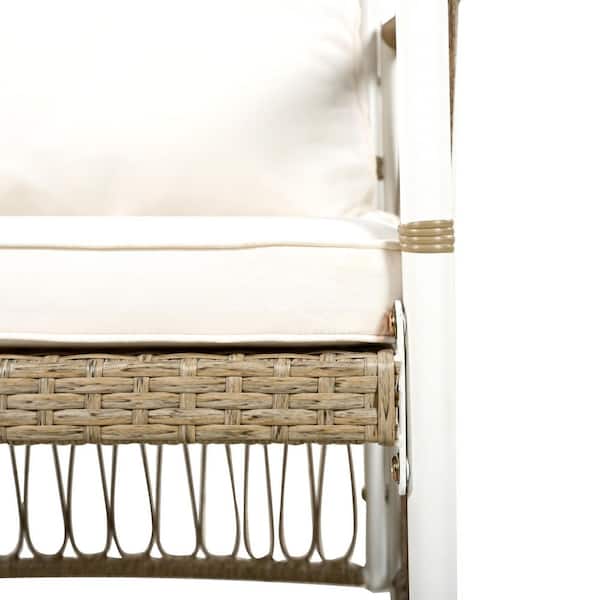 5-Piece Wood Outdoor Dining Table Set, Patio Extendable Butterfly Leaf Round Outdoor Dining Table with Natural Cushions