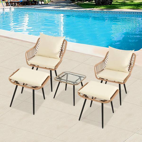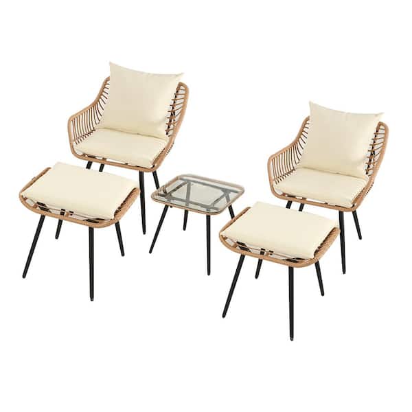 5-Pieces Wicker Patio Conversation Set Outdoor Patio Furniture Set with Beige Cushions for Deck Garden Backyard Poolside