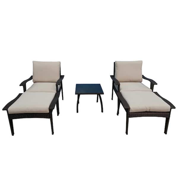 5-Pieces Wicker Patio Conversation Set, Patio Furniture Outdoor Chair and Ottoman, Seating Group with Beige Cushions