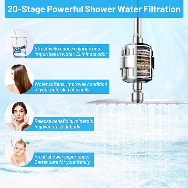 5-Stage Handheld Shower and 20 Stage Filtered Shower Head Combo with 60 in. Stainless Steel Hose and Holder in Silver