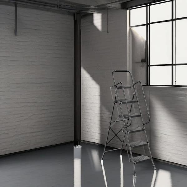 5-Step Ladder, 350 lbs. Portable Folding Ladders for Home with Handrails and Tool Tray and Anti-Slip Pedal, Black