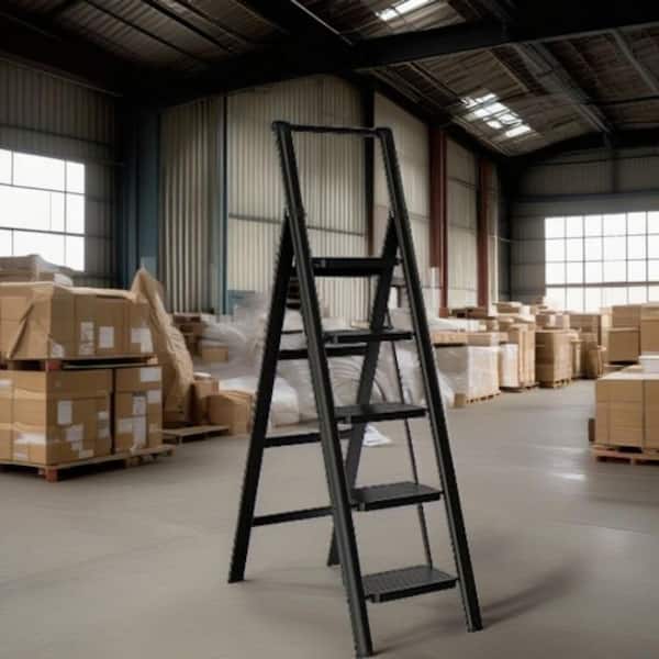 5 Step Ladder Folding Footstool, 5 Step Ladder with Non-Slip Wide Steps, Easy Carry Handle Folding Ladder,Reach,Aluminum