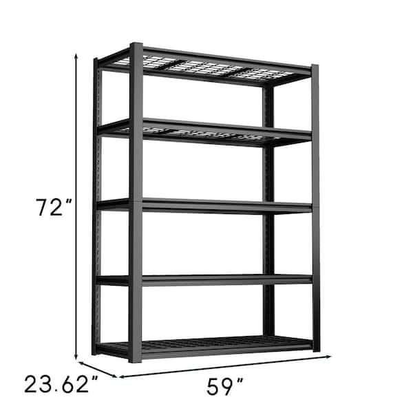5-Tiers Heavy Duty Metal Adjustable Wire Garage Storage Shelving in Black (59 in. W x 72 in. H x 23.6 in. D)