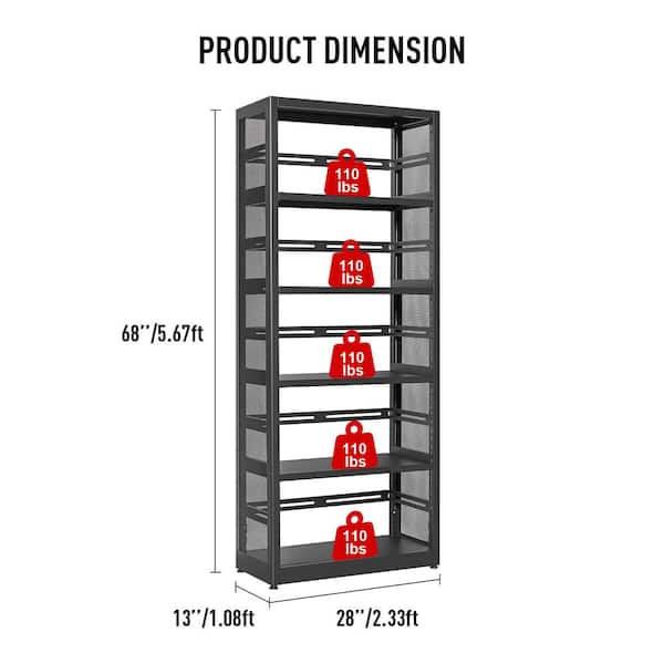 5-Tiers Metal Adjustable Garage Storage Shelving Unit in Black (28 in. W x 68 in. H x 13 in. D)