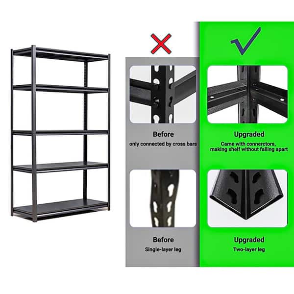 5 Tiers Metal Heavy-Duty Garage Storage Shelving Unit in Black (47 in. W x 72 in. H x 23.6 in. D)