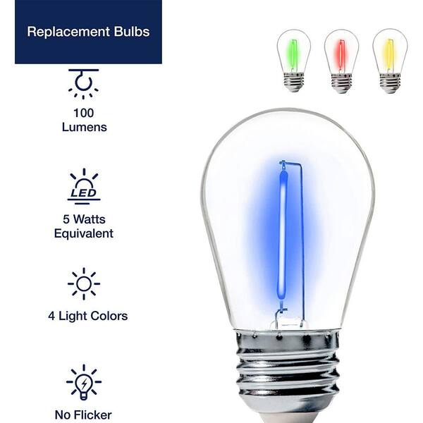 5-Watt Equivalent S14 Colored LED String Light Bulbs, E26 Base, Red/Green/Blue/Warm White (24-Pack)