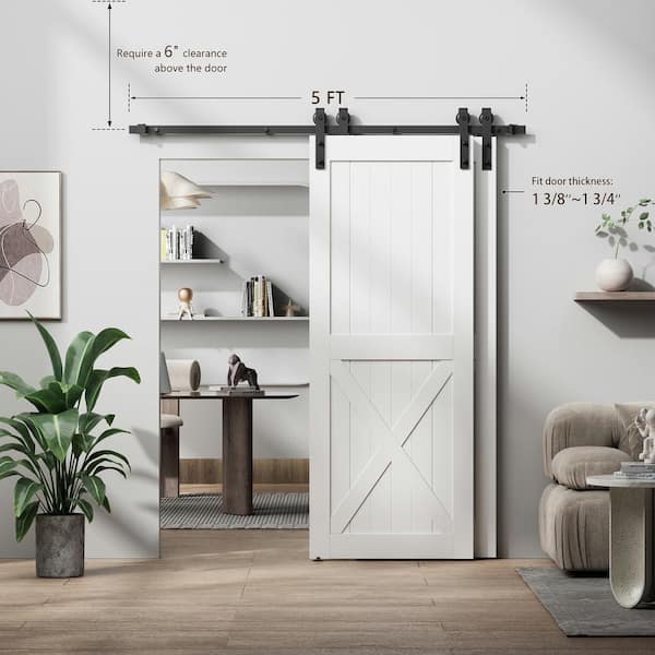 5 ft. J-Shaped Bypass Sliding Barn Door Kit for Double Door, Black Steel