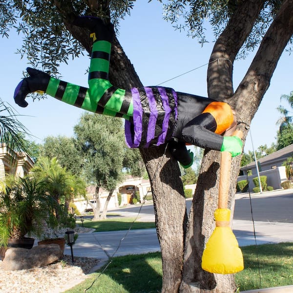 5 ft. Long Multi-Color Polyester Indoor Outdoor Crashing Witch Stuck In Tree Hole Inflatable, Home Garden Seasonal Decor