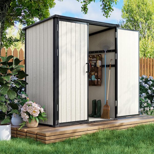 5 ft. W x 3 ft. D Khaki Outdoor Storage Plastic Resin Shed with Double Door and Floor (15 sq. ft.)