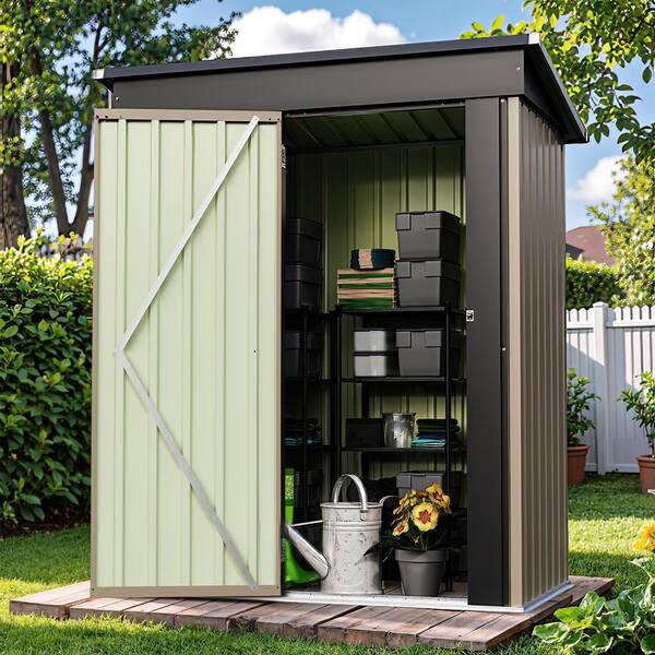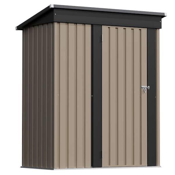 5 ft. W x 3 ft. D Outdoor Storage Brown Metal Shed with Sloping Roof and Lockable Door (15 sq. ft.)