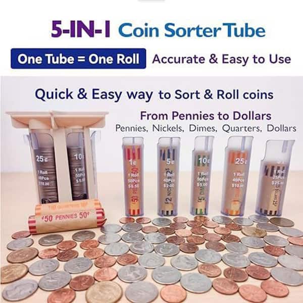 5-in-1 Coin Sorter Tube Counter with Coin Wrappers Organizes U.S. Currency for Easy Change Sorting and Rolling