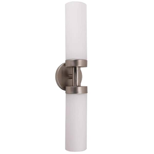 5 in. 2-Light Brushed Nickel Sconce with Satin Etched Opal Glass Shade