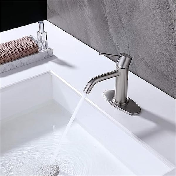 5 in. Brushed Nickel Single Hole Bathroom Sink Faucet Single Handle, Accessory Set, Number of Pieces 1