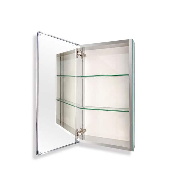 5 in. D x 15 in. W x 26 in. H Silver Aluminium Bathroom Frameless Surface Mount Medicine Cabinet with Mirror