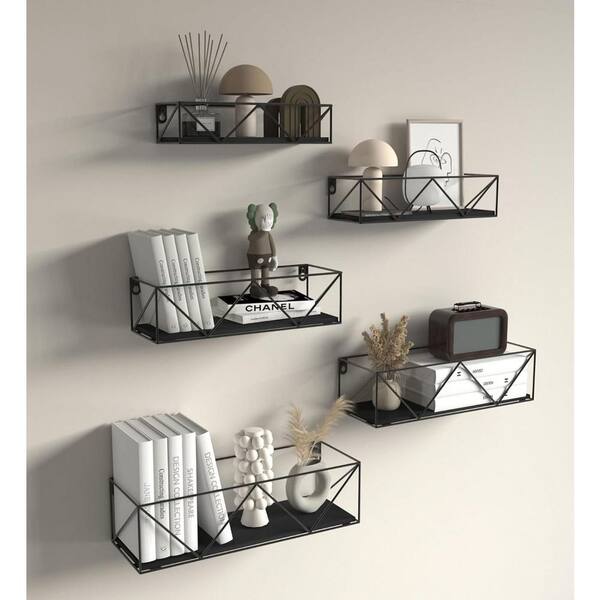 5 in. W x 16 in. D Black Floating Shelves Decorative Wall Shelf (Set of 5)
