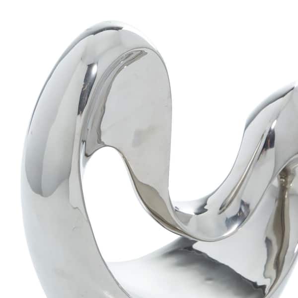 5 in. x 14 in. Silver Polystone Heart Abstract Sculpture with Black Base