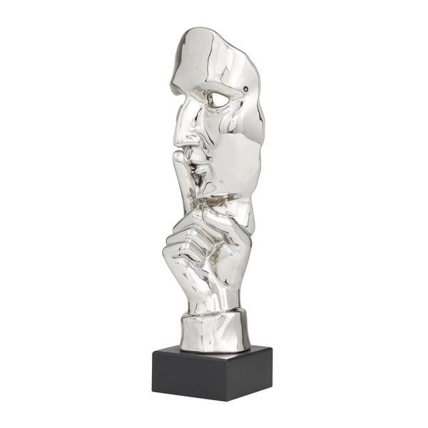 5 in. x 17 in. Silver Polystone Quiet Gesture Mask Sculpture