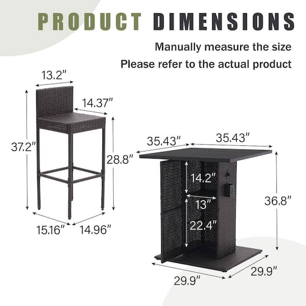 5 of Pieces Gray Wicker All Weather Outdoor Bistro Set Conversation Bar Set With Metal Tabletop and Stools for Patios