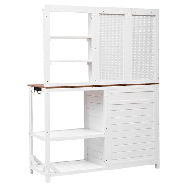 50.2 in. W x 65.7 in. H White Potting Bench, Garden Workstation with Ample Storage