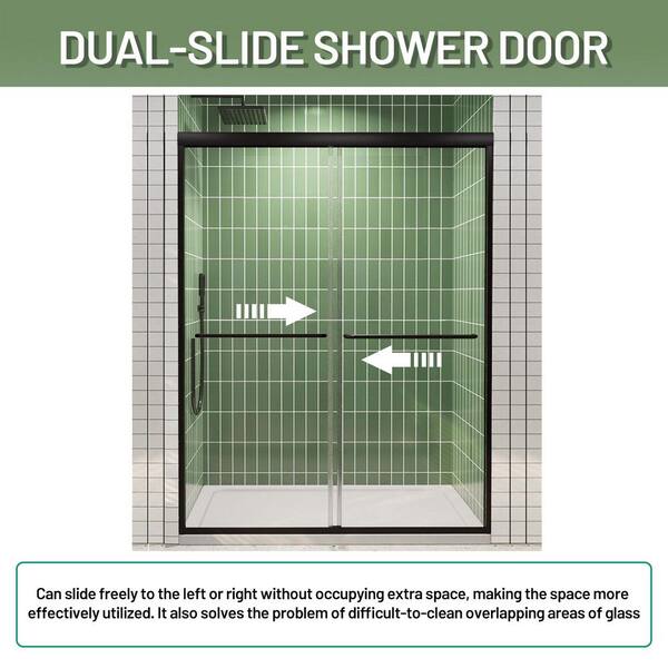 50-54 in. W x 72 in. H Semi-Frameless Double Sliding Shower Door in Matte Black Finish,1/4 in.(6mm) Clear Tempered Glass