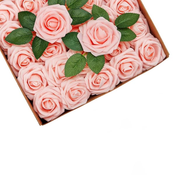 50 Pcs Blush 9.84"Height Artificial Roses Foam Flowers for Decoration