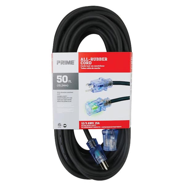 50 ft. 12/3 SJOOW Black Outdoor Extension Cord with Primelight Indicator Light