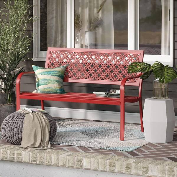 50 in. 2-Person Metal Cherry Red Outdoor Bench