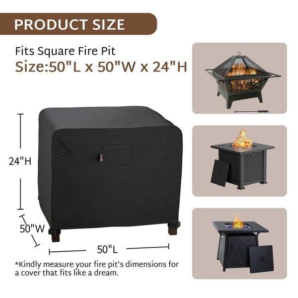 50 in. L x 50in. W Square Fire Pit Cover Outdoor Waterproof and Weatherproof Heavy Duty 600D Patio Fireplace Table Cover