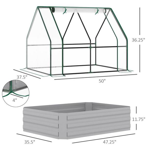 50 in. W x 37.5 in. D x 36.25 in. H Galvanized Steel Raised Garden Bed with Clear PVC Greenhouse Cover