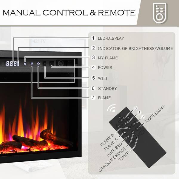 50 in. Wall Recessed and Wall Mounted Electric Fireplace in Black with Touch Control Panel and Remote Control