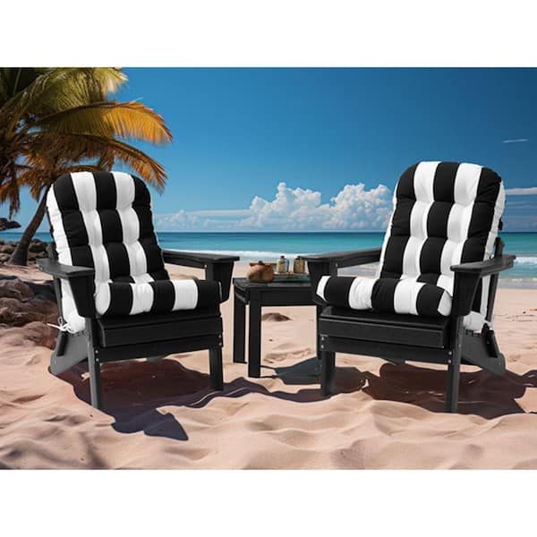 50 in. x 20 in. 2-Piece Polyester Outdoor Adirondack Chair Cushion in Black and White