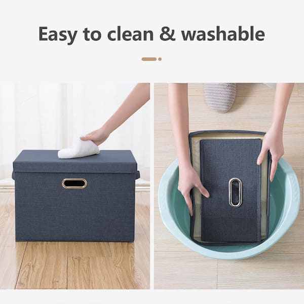 50 qt. Fabric Collapsible Storage Bin with Lid in Blue (3-Pack)