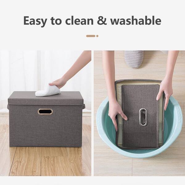 50 qt. Fabric Collapsible Storage Bin with Lid in Gray (3-Pack)