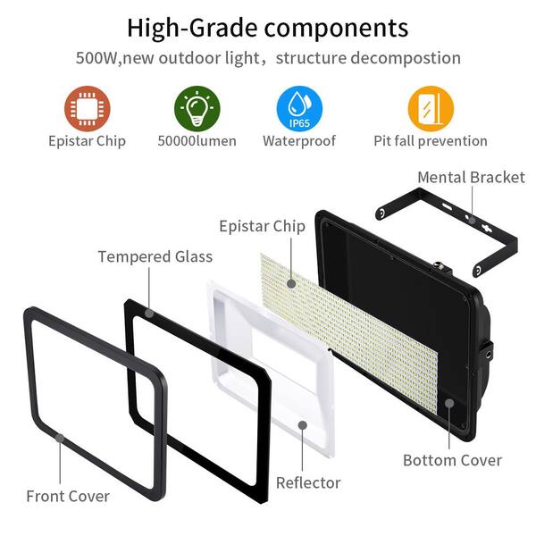 500-Watt Black Outdoor Integrated LED Flood Light 3000K Warm White
