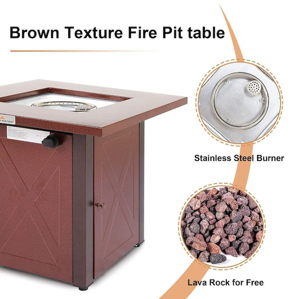 50000 BTU Brown Square Steel 28 in. Outdoor Propane Gas Fire Pits Table
