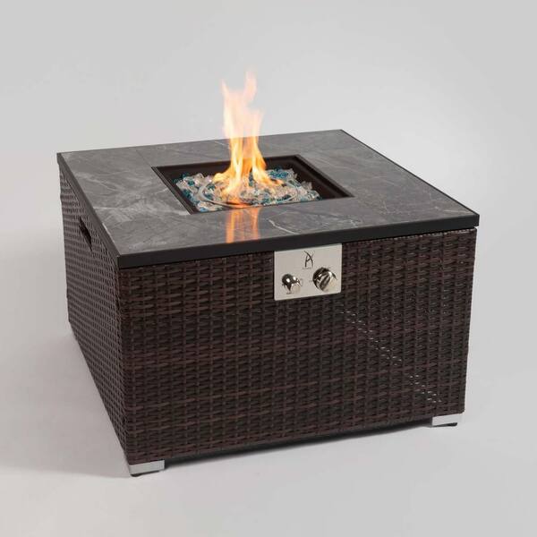 50000BTU Antique Espresso Square Rattan 32 in. Fire Table with Ceramic Tile Tabletop