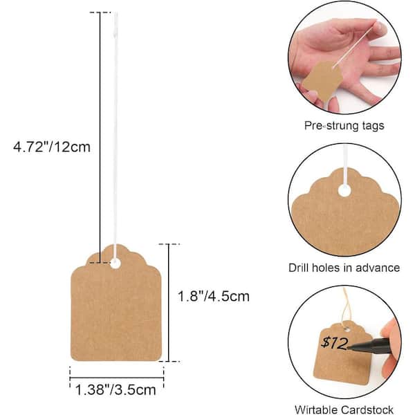 500Pcs Blank Brown Price Tags with String Kraft Paper 1.8x1.4IWritable Hanging Tags for Small Business Retail Jewelry