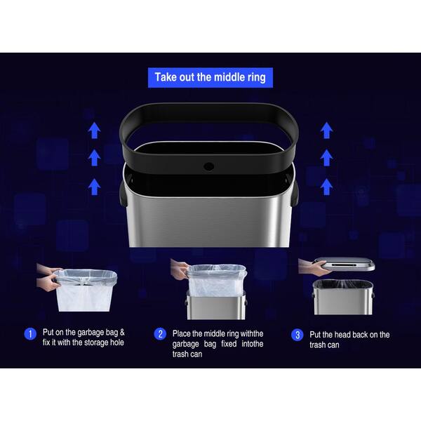 50l Silver Steel Smart Automatic Trash Cans, Full Intelligent Sensor