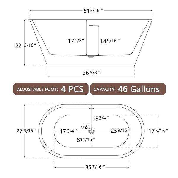51 in. x 28 in. Acrylic Soaking Bathtub in Gloss White with Center Drain in Polished Chrome