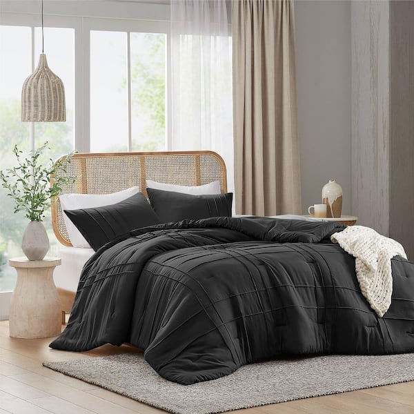 Porter 2-Piece Black Microfiber Twin/Twin XL Soft Washed Pleated Comforter Set