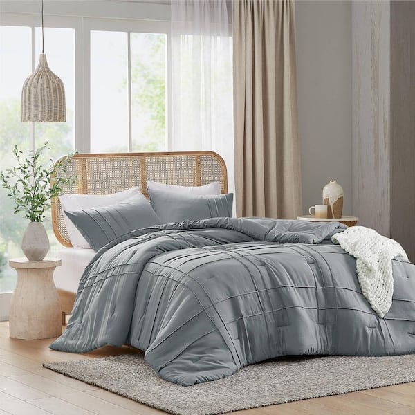 Porter 3-Piece Blue/Grey Microfiber Queen Soft Washed Pleated Comforter Set
