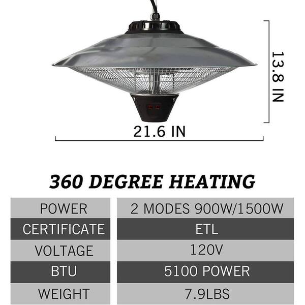 5100 BTU Ceiling Mounted or Hanging Infrared Electric Heater, Waterproof IP24