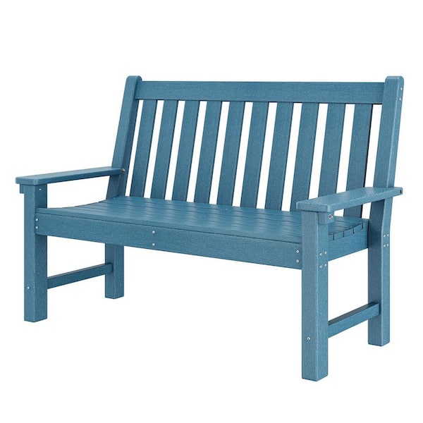 52 in. 2-Person Blue Plastic Outdoor Bench