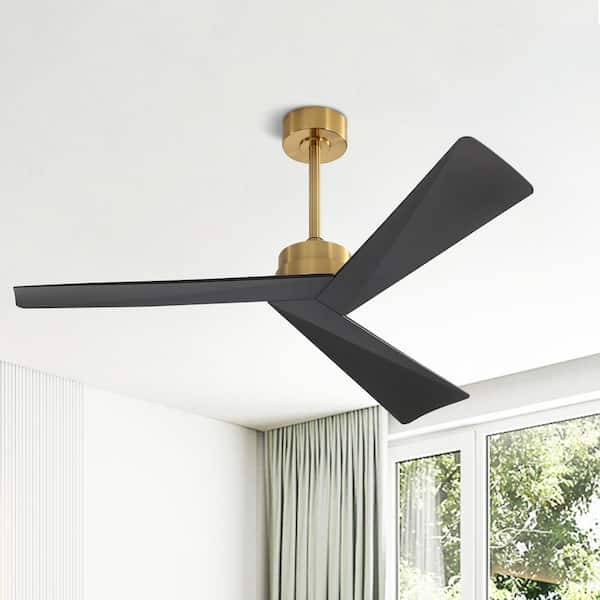 52 in. 3-Blades 6 Fan Speeds Matte Gold and Black Ceiling Fan Without Light