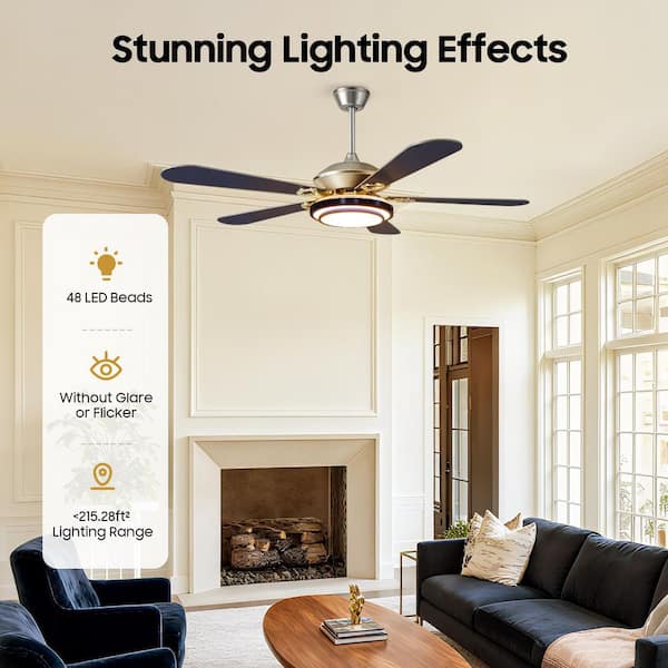 52 in. Indoor Blue and Silver Mute Ceiling Fan for Dining Room Bedroom with 3-Color Integrated LED Light and Remote